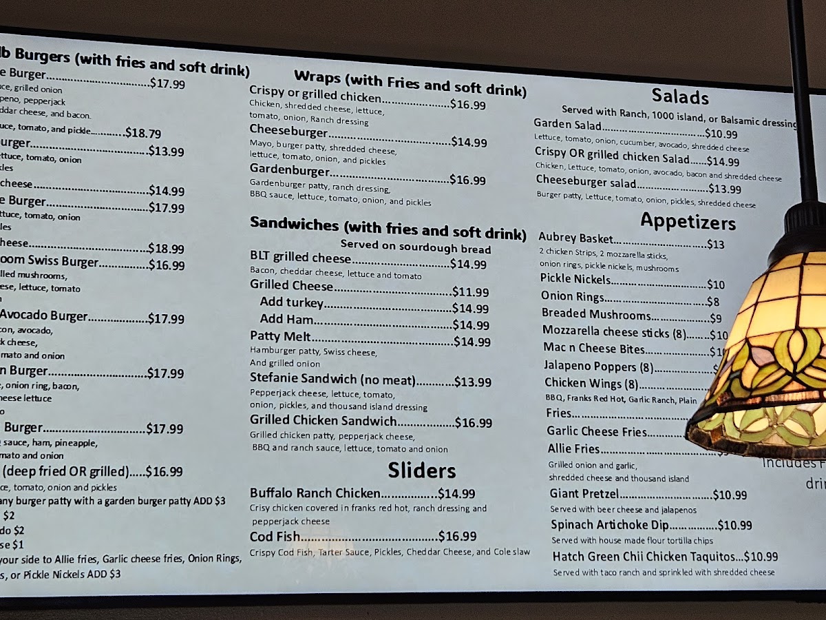 The menu features fresh salads, filling sandwiches, and generous 1/3 lb burgers served with fries and a soft drink, making it easy to find something to suit a casual dining mood. The offerings are straightforward but thoughtfully put together, inviting diners to unwind and enjoy familiar tastes alongside mountain views.